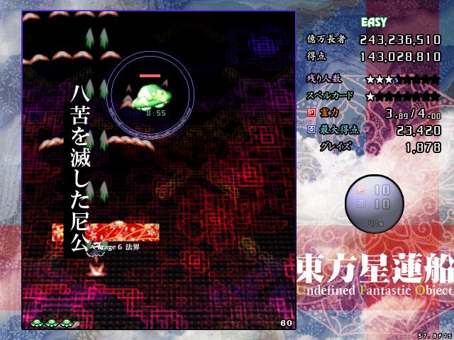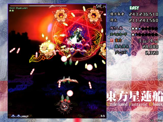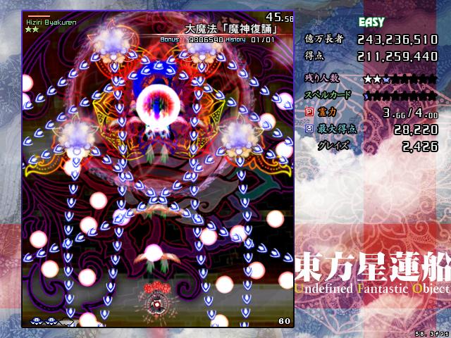3面ボスの一輪の通常攻撃の強化版みたいなものだが、これもラスボスにしては良心的な弾幕