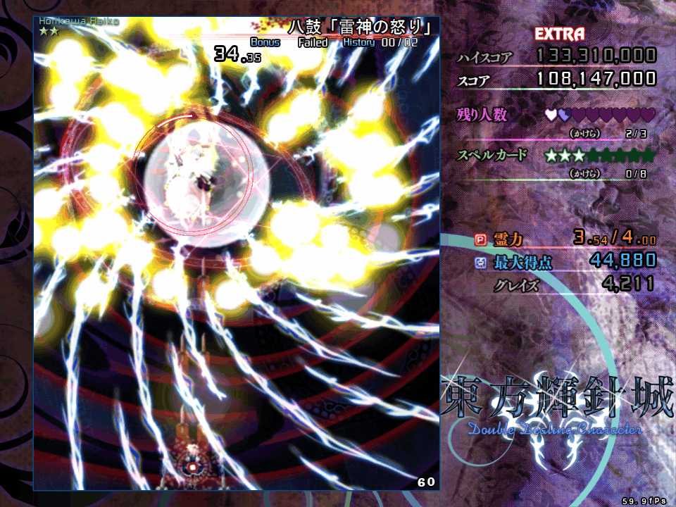 雷鼓のスペルカードは前作神霊廟のEXボス、マミゾウと同じように、名前の頭の漢字にはスペルカードの番号が記されています