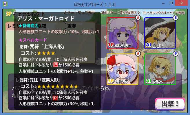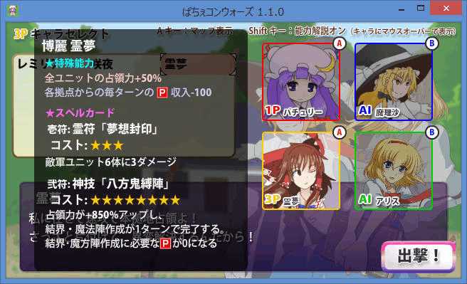 現時点でパートナーとして選択できるのはレミリア、咲夜、霊夢の3人で、主にレミリアは攻撃面、咲夜は回復面、霊夢は防御面の強化が期待できる