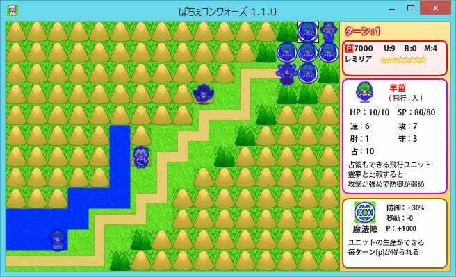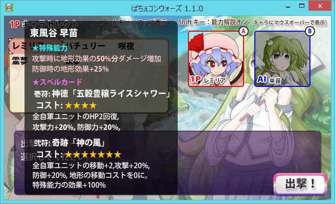文は飛行ユニットの移動力を上げる能力を持つので、遠距離からの速攻を得意とする