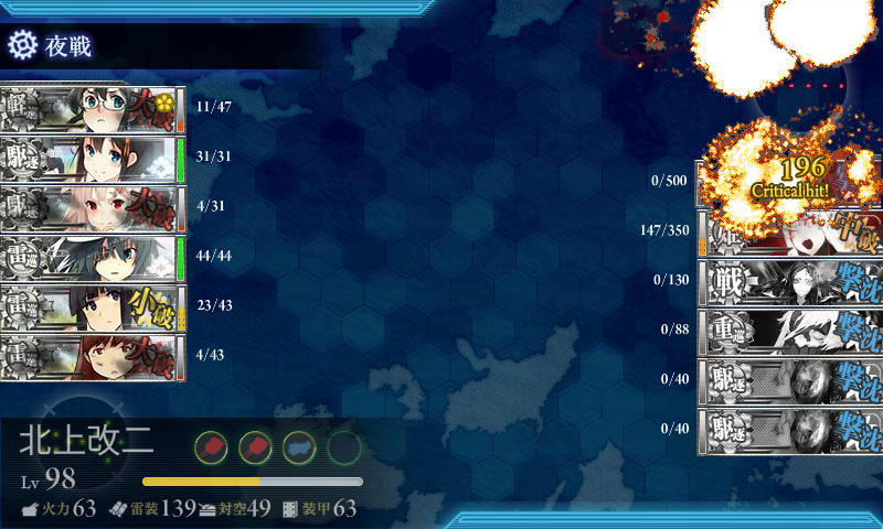 ダメだった・・・T字有利引いても夜戦でクリティカルでないとどうしようもないんだよなあ。