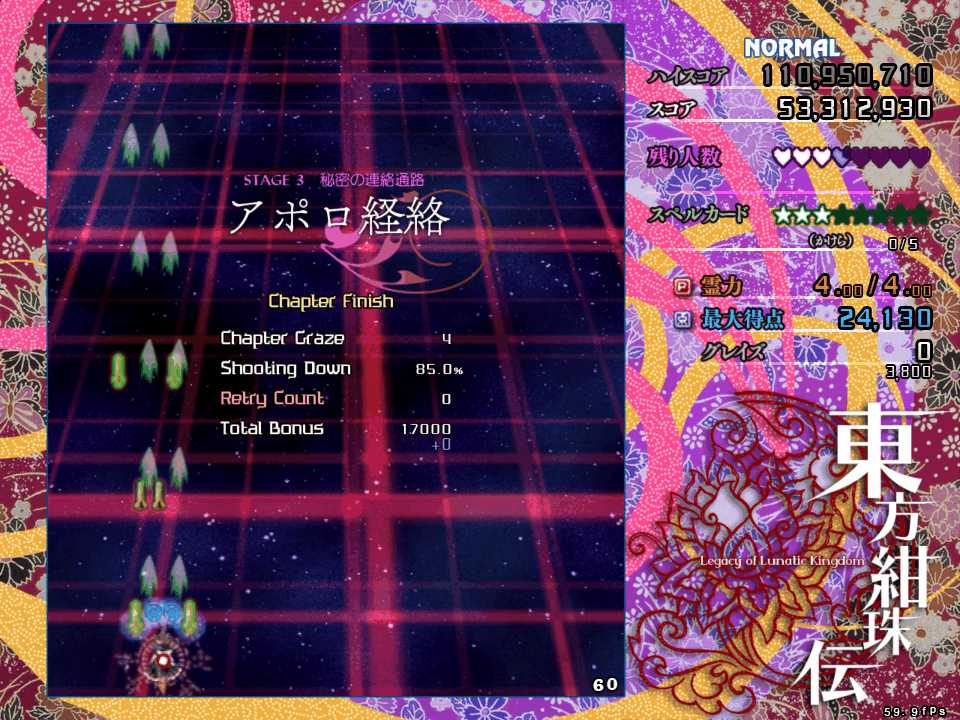 プレイを繰り返していて気づいたのですが、今作はグレイズのカウント方法が他の作品と違っているようで、そのせいで多作品よりもグレイズのカウントが多くなるらしいです