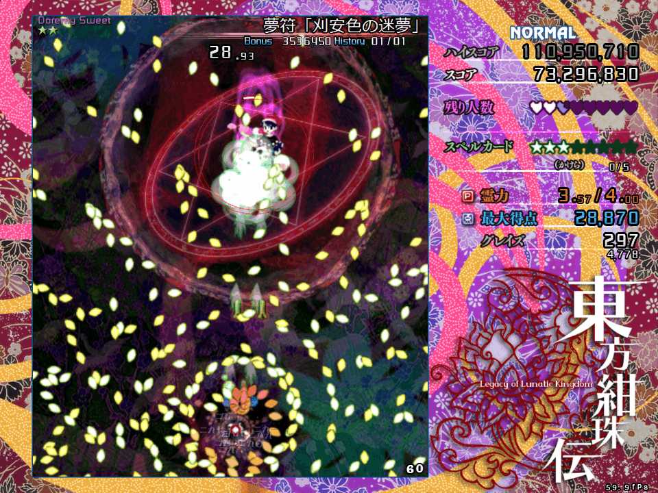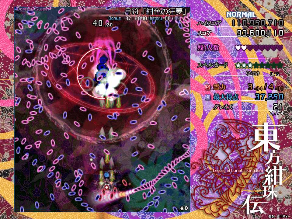 その代わりレーザーの結界に囲まれている間は狂おしいくらいにグレイズするので、このスペカだけで数千回のグレイズと数千万点のスコアを稼ぐことが出来ます
