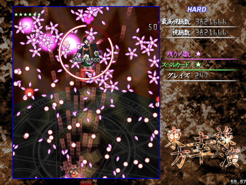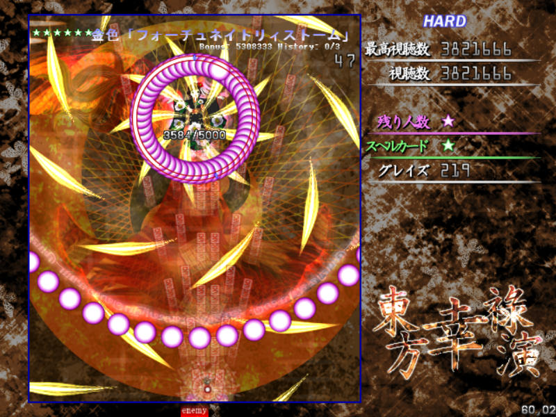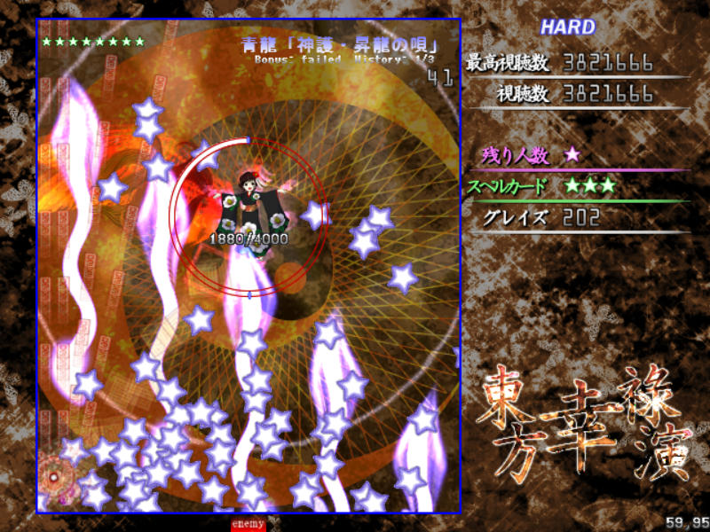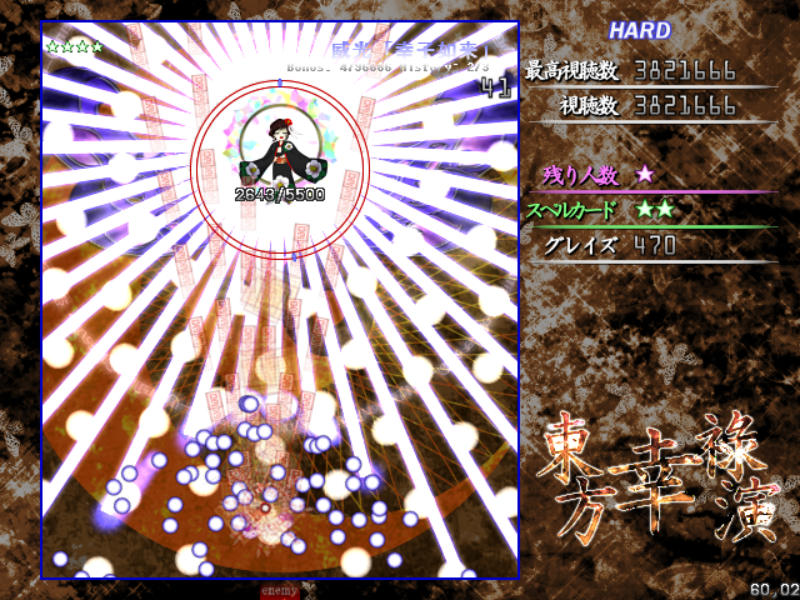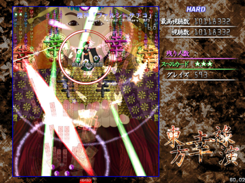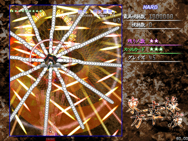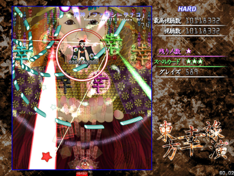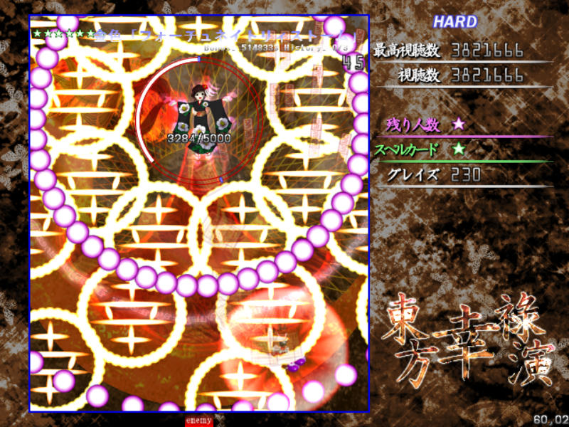 Hard以降だとメガ幸子撃破後に耐久スペル、伝統行事「紅白弾幕合戦」が発動!