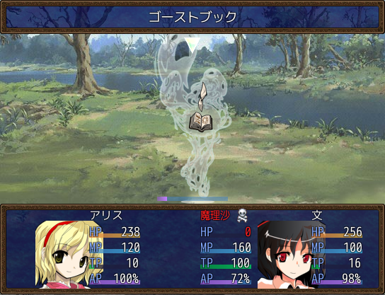 今作の戦闘の特徴なんですが、何か行動をして時間が進むとパーティ全員のHPとMPが大回復し、しかも戦闘不能も自動回復します