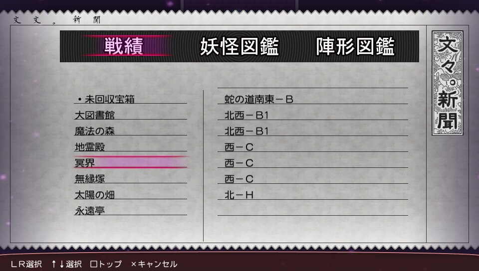 というわけで、永遠亭最深部の攻略途中だったのですが、一旦未回収宝箱の回収のためクリア済みのダンジョンを回ってきました