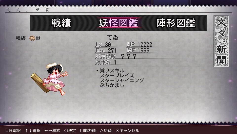 また、従来では文のレベルが低いとスキルが失敗してしまうため、妖怪図鑑を埋める作業は文のレベルが上がってからやるものだったのですが、その仕様も完全に撤廃され、レベル不足によるスキルの失敗はなくなりました