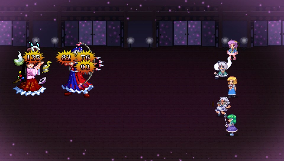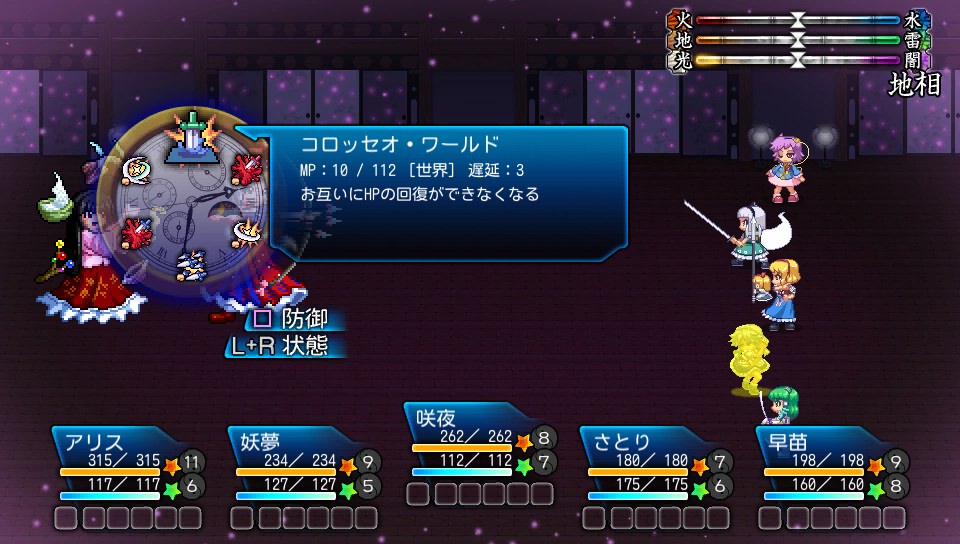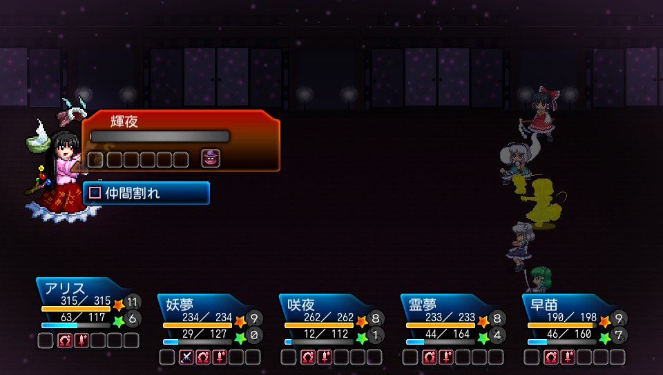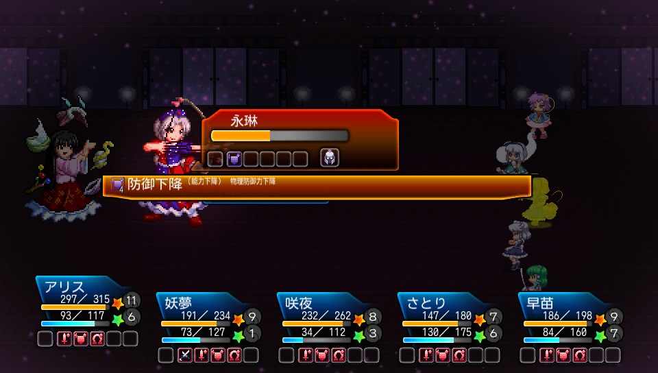 ちなみに早苗にはこのほかに攻撃上昇の補助も使わせていましたが、永琳に物理攻撃を仕掛ける際、命中150の咲夜でもたまに攻撃を外すくらいの回避力があるため、安定しない場合は命中上昇をかけてもよいかと思います