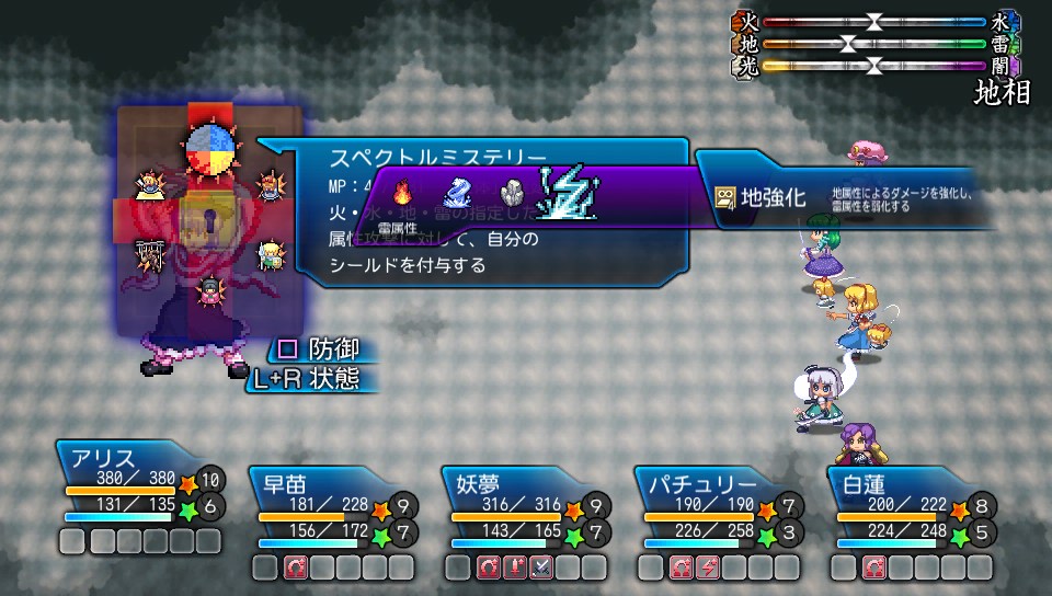 それから物理アタッカーとして妖夢を参加させ、白蓮のエレメンタルウェポンで地属性を付与します