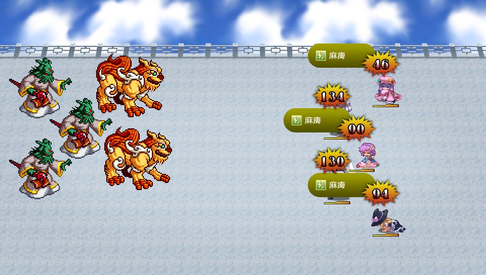 物理攻撃は耐性があって通りにくいと思われるので、両手剣のスキルで物理耐性を無視できる咲夜をアタッカーとし、白蓮のエレメンタルウェポンで雷属性を付与します