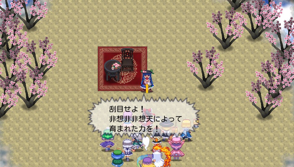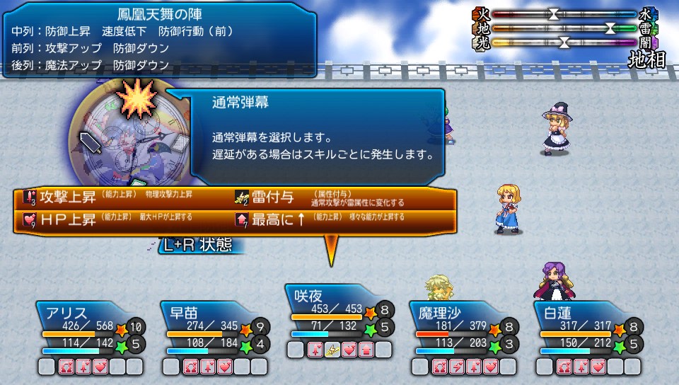 そのため天子の強力な範囲攻撃を分散させるため、鳳凰乱舞の陣で中央のアリスを強力なデコイ状態にします