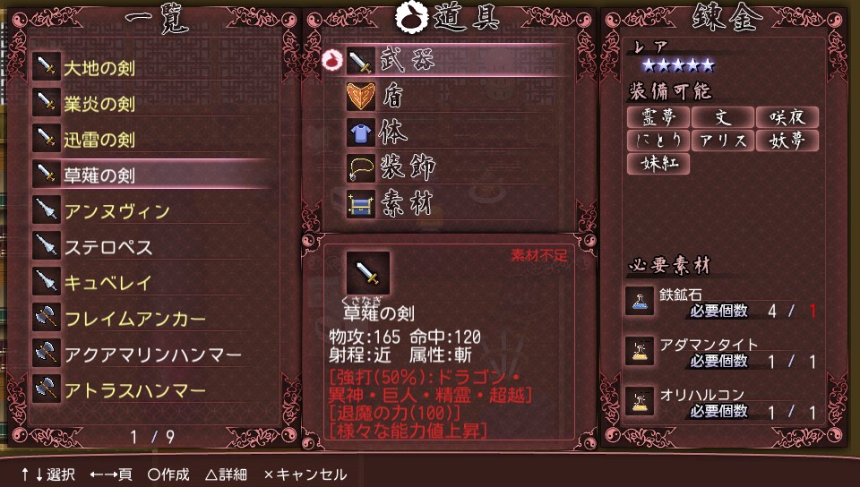 当時私は草薙の剣を作るためだけに、10時間近く素材集めをしていました(滝汗)