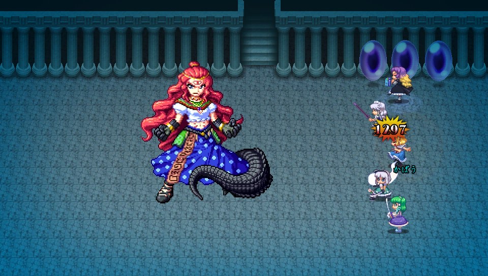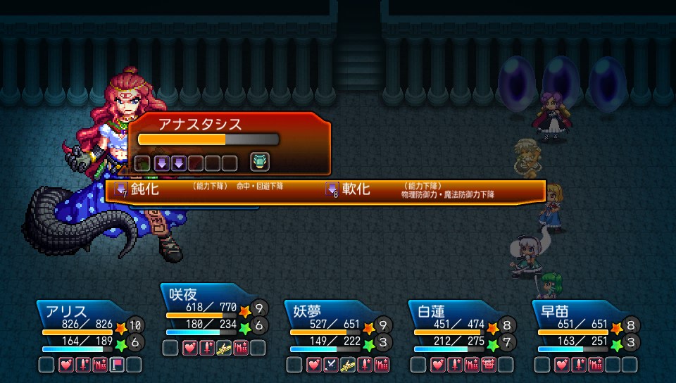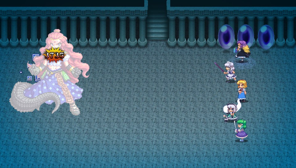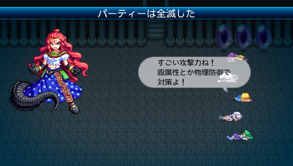 味方が戦闘不能になったら妹紅のコマンダースペルで蘇生させていたのですが、死ぬとまたバフがけから始めないといけないので、こちらの攻め手がかなり鈍ってしまいます