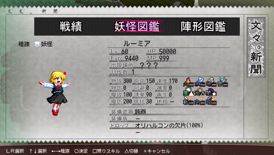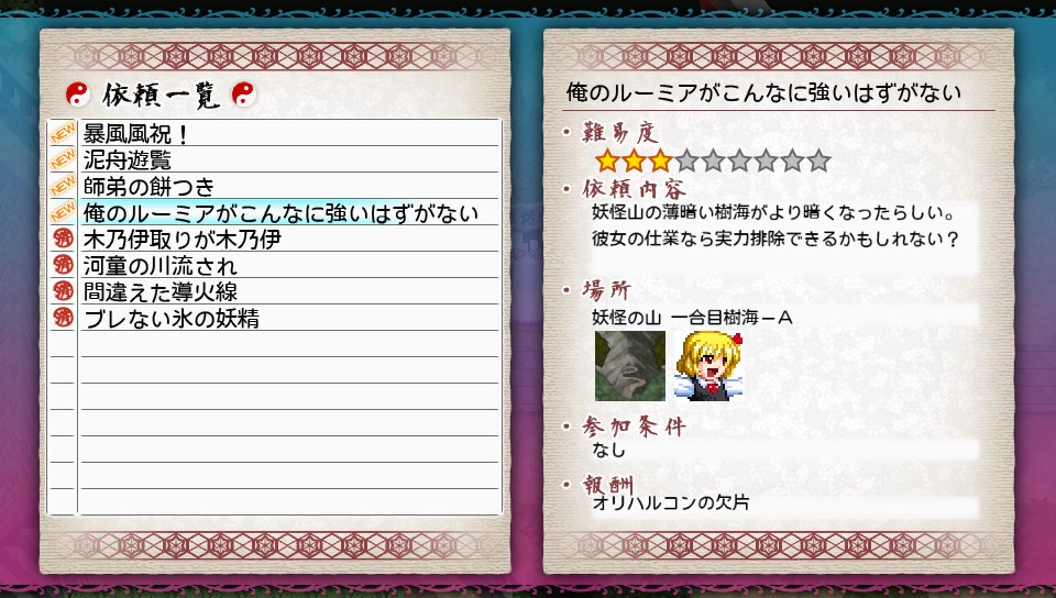 本来ならリトスの割合ダメージがそのまま効くほか、即死も効くのでチルノの誘発を高めてフリーズブラッドで即死を狙ったのですが、運が悪かったのか3,4回やっても即死しなかったので、妹紅のファイナルフィンガーで殴り倒しましたw