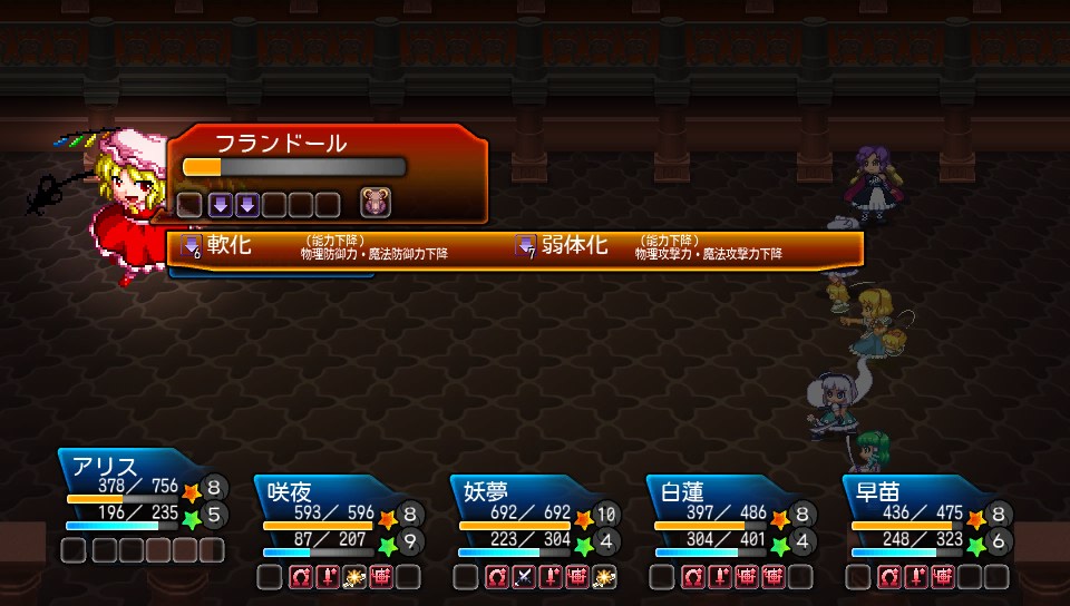 パチュリーは闇に耐性があるため、まずはスターソードをかけてパチュリーから先に狙うのがおすすめ