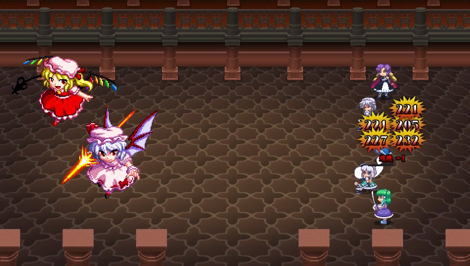 フランとレミリアはどちらから倒しても良いと思いますが、片方を倒すと残った方の攻撃が激化するので、両方のHPを均等に削るなどして、一体になったら火力を集中させてなるだけ早期決着させましょう