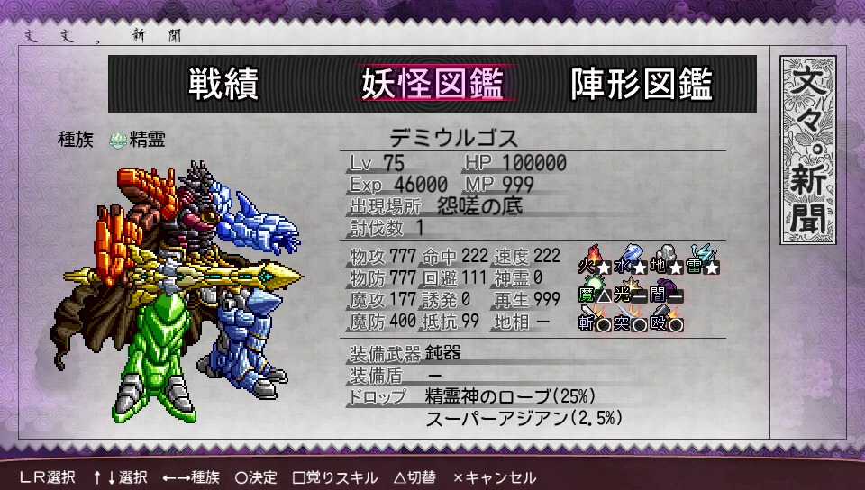 強敵の中で一番苦戦したのがデミウルゴスで、各属性の最強魔法は●耐性をつけていても耐えられないほど素の威力が高いだけでなく、耐性がないと100%即死や除外、麻痺の追加効果を受けるという極悪な技を連発してきます