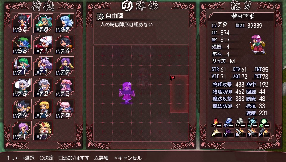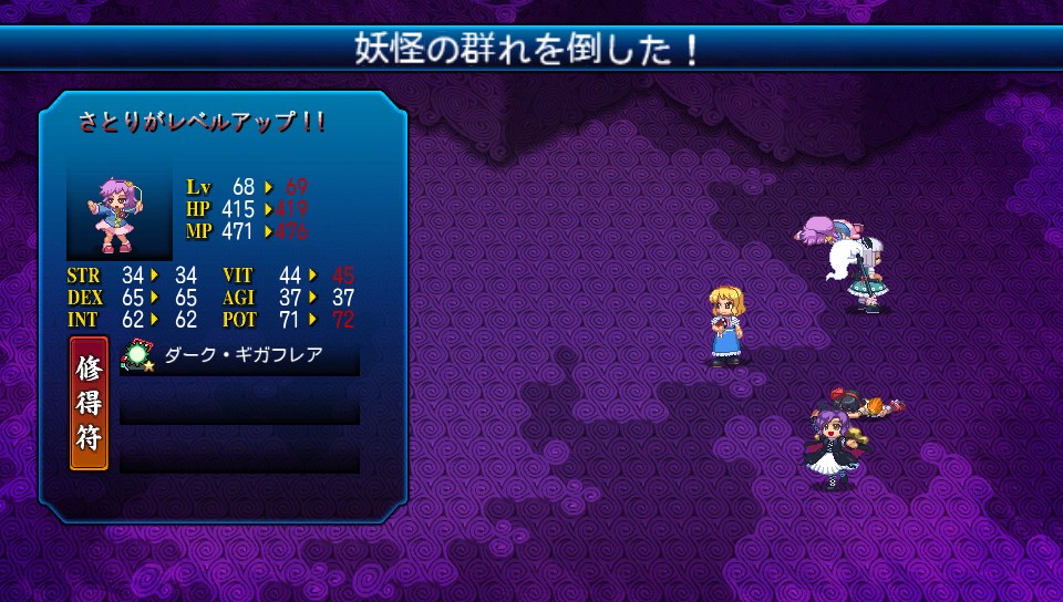 魔理沙の弾幕に地属性が無い時点で地属性アタッカーがパチュリーしかいなくてはぶられてる感はありましたが、最強魔法も地属性だけがラーニング出来ないのは流石にどうかと思います…