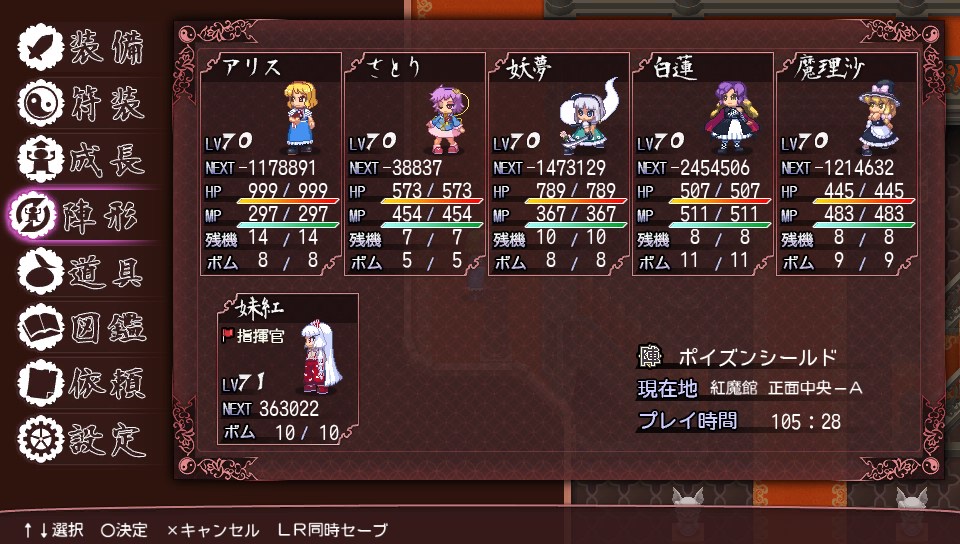 メイン火力としてさとりはコズミックライナー、魔理沙は速射マスパとスペカ、妖夢は草薙の剣での未来永劫斬を使わせました