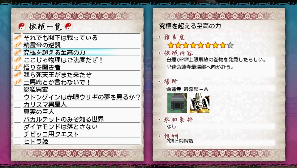 舞台は図書館最深部と同様、Vita版で追加された新ダンジョンの命蓮寺最深部です