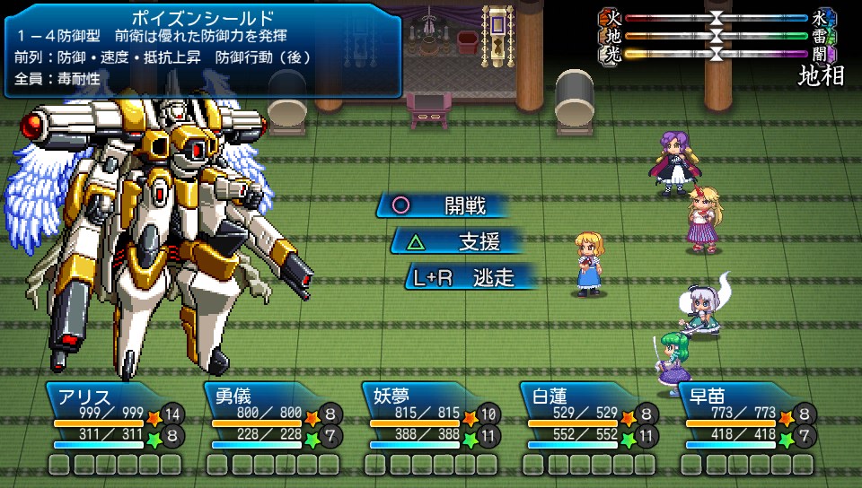 こちらのアタッカーには草薙の剣装備の妖夢と、銀河装備の勇儀を配置しました