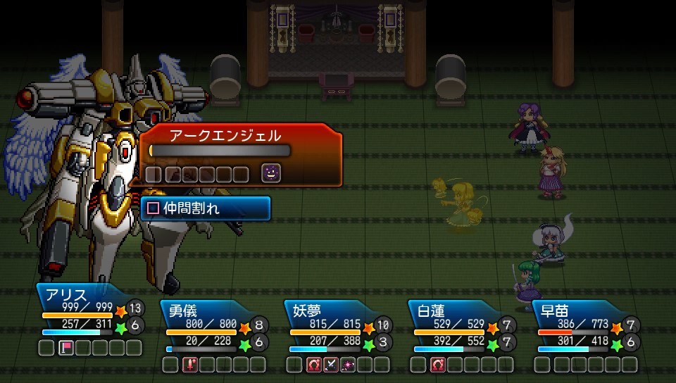 が、とにかく威力が高く☆耐性をつけたアリスでもリトルレギオンで5人分のダメージを受けると耐えられないので、白蓮のアンチマジックシェルや早苗のHP上昇で耐久力を上げればギリギリ耐えられると思います