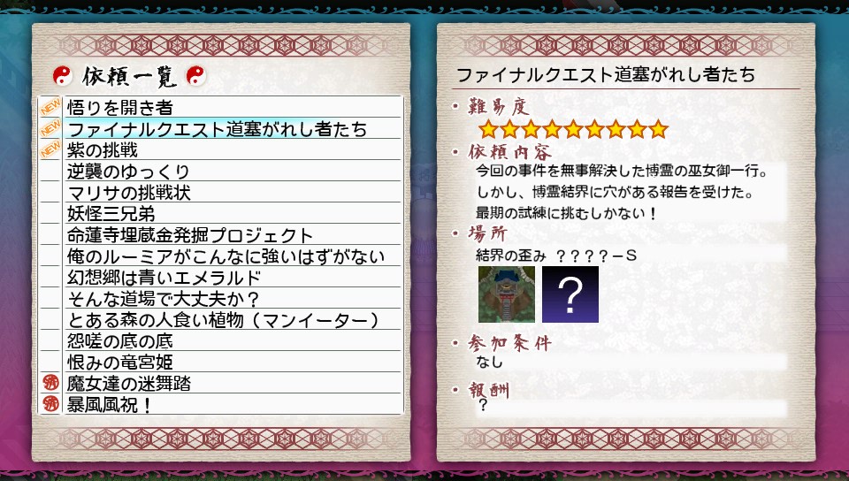 依頼を受けたあと、博麗神社から階段を下りて外に出ようとすると結界の歪みに入れます