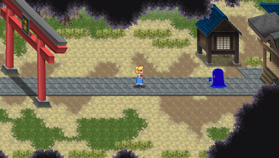 このダンジョンはこれまでに訪れたことのあるほかのダンジョンの地形がごちゃ混ぜになって構成されている空間で、一番奥へ行くと博麗神社と似たような場所にワープします