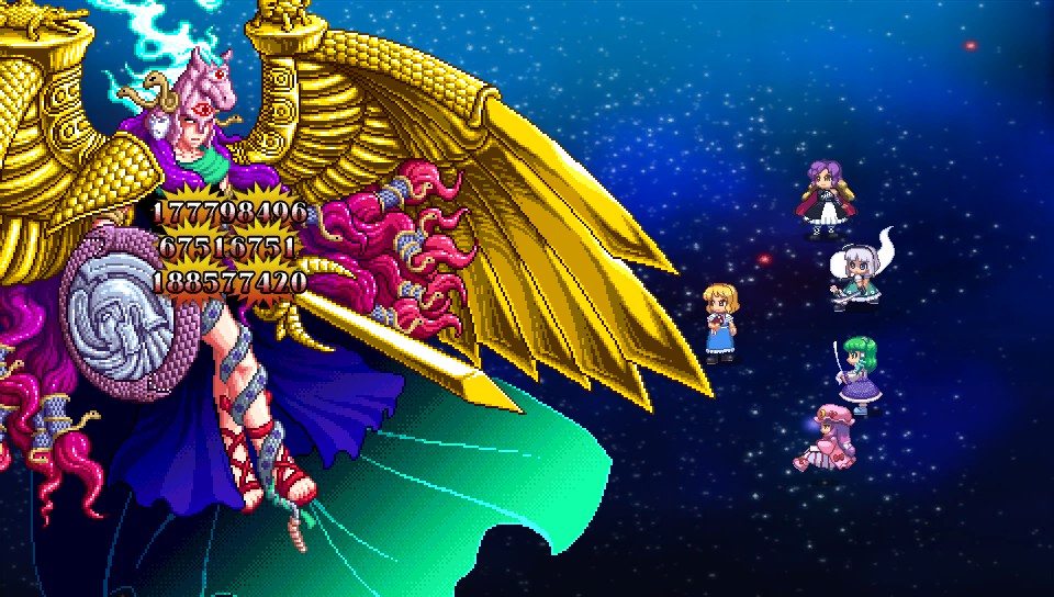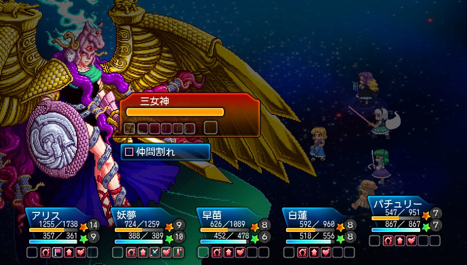 白蓮のウェポンブレスは鉄板ですが、阿求のハイパーウェポンは遅延がでかすぎて泥仕合でない限り1戦闘に1回しか使えない、というか私は1回も使ったことないんですが、こういう使い方があるんですね。