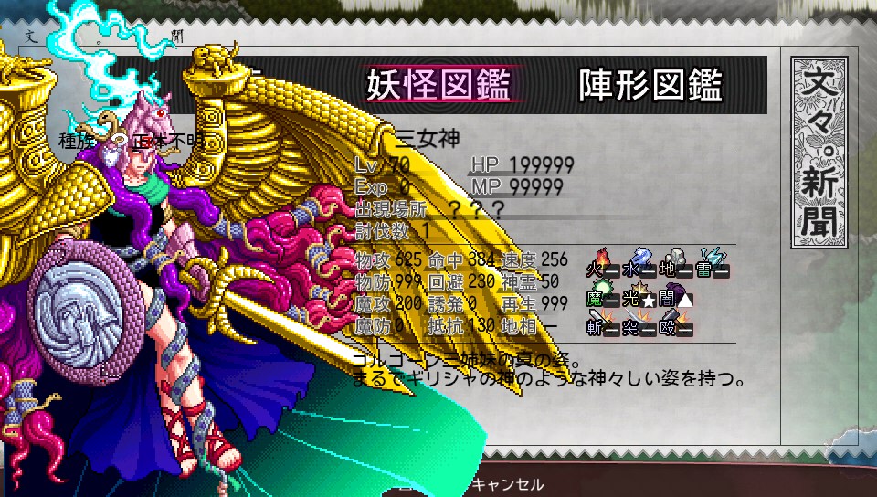 リュウグウノツカイは玄雲海と有頂天に出現するザコ敵なのですが、出現頻度が低めで、しかもサンダーブレスが強烈なのでダンジョン攻略中の段階では出会ったら積極的に戦わず逃げることが多く、撃破数が全然稼げていませんでした