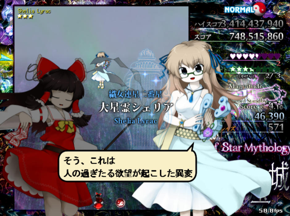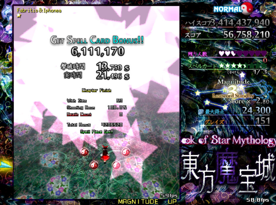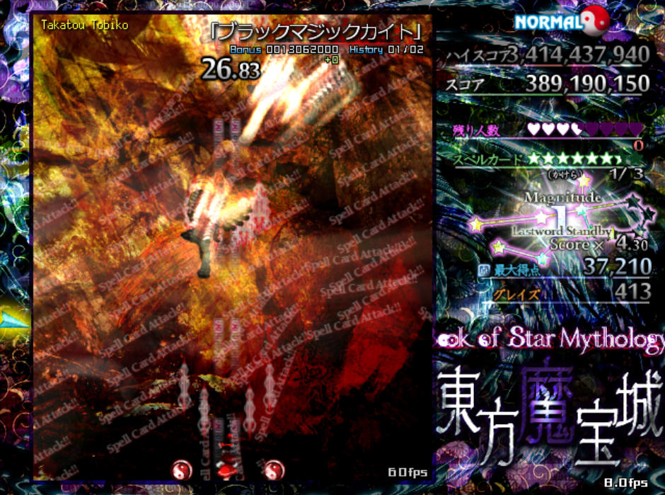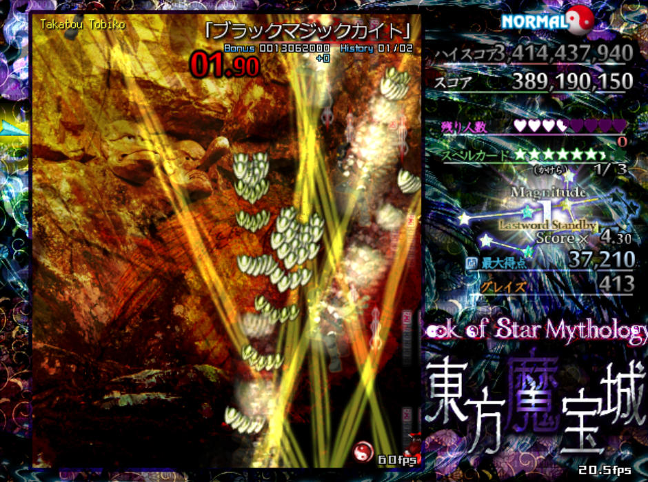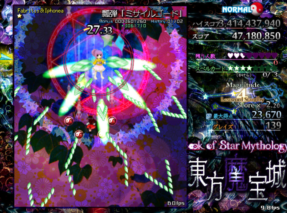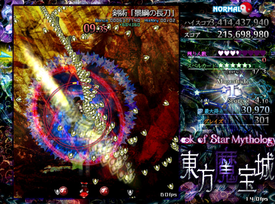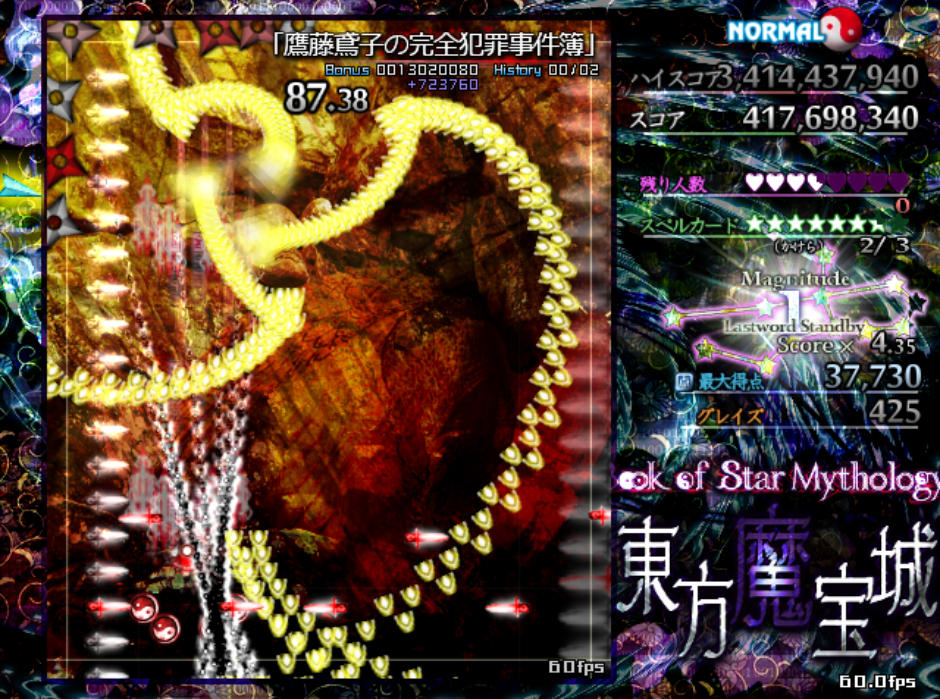 反面、弾幕の難易度自体は原作の平均よりもやや難しめになっており、特にボスが最後に使用するラストワードは標準的な難易度(Normal)と比較すると規格外の高難度(Lunatic級)となってます