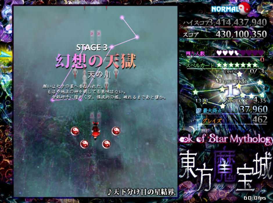 空から星が降ってきたり、星がレーザーで繋がってオリオン座などの実在する星座が出現したりなど、見た目にも美しい弾幕が楽しめます