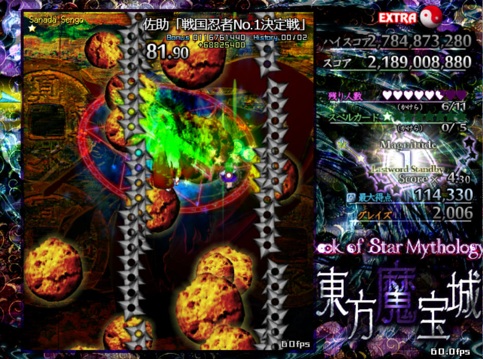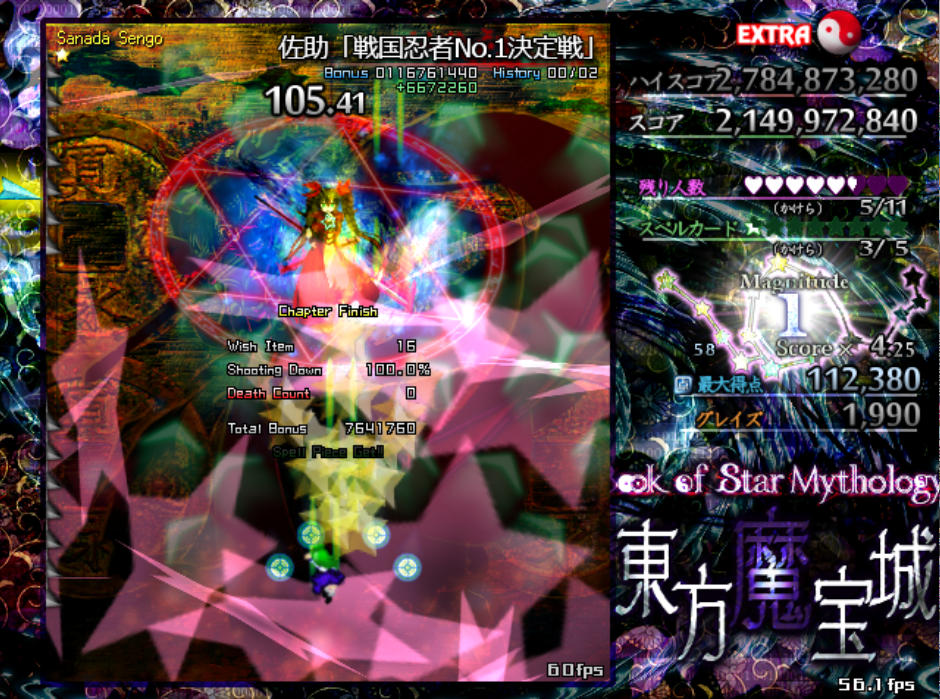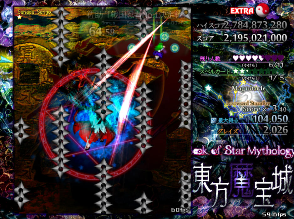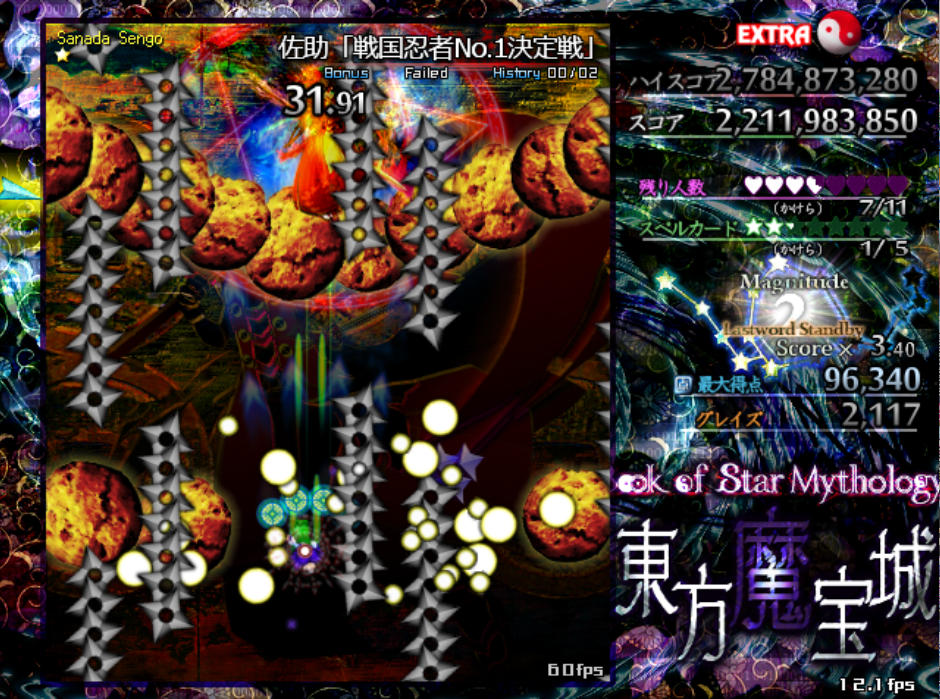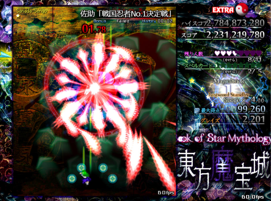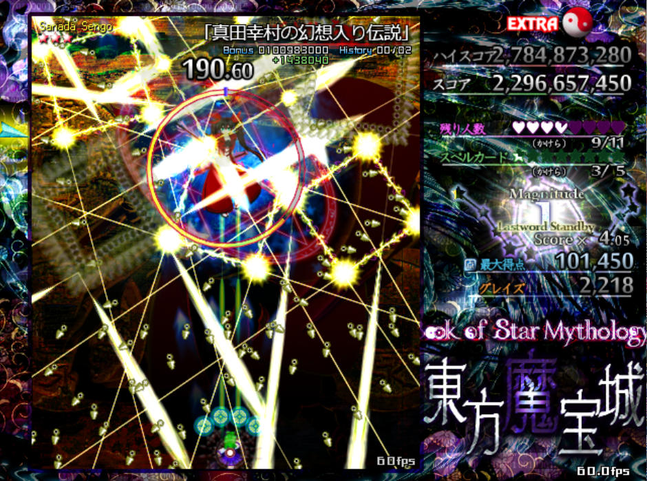 ラストスペルの「真田幸村の幻想入り伝説」を最後まで突破すると実質EXクリアとなりますが、最後にラストワードが発動