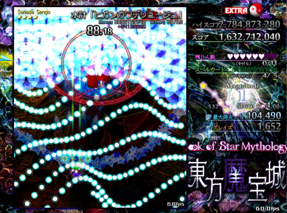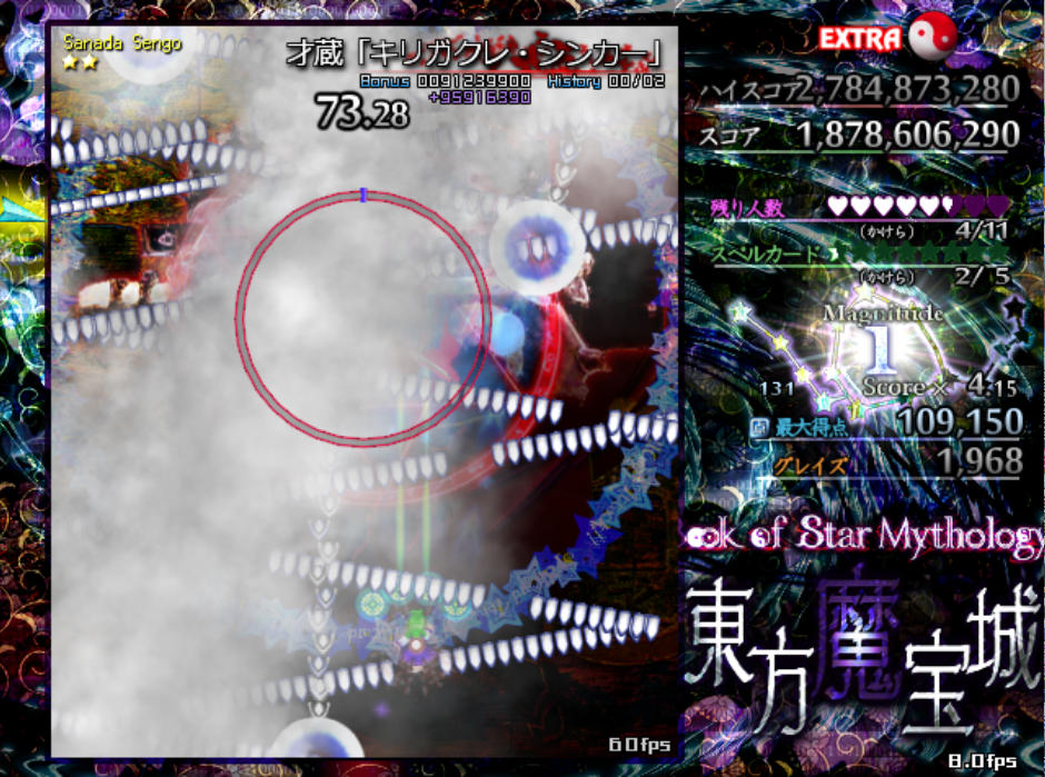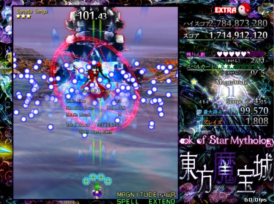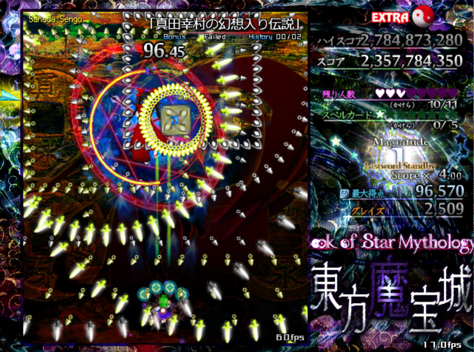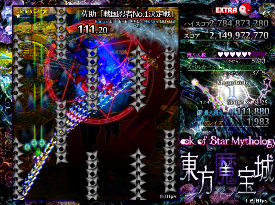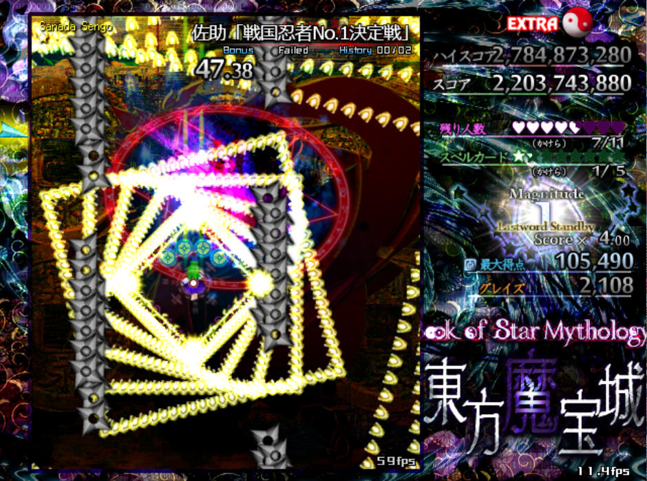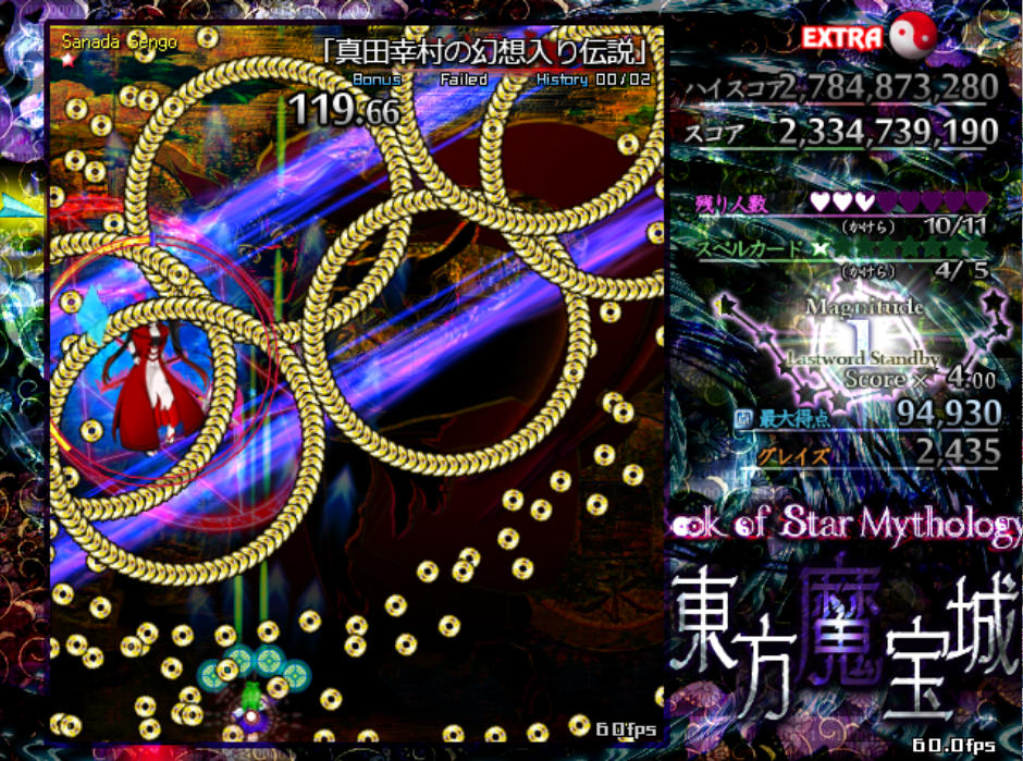 ラストスペルの「真田幸村の幻想入り伝説」を最後まで突破すると実質EXクリアとなりますが、最後にラストワードが発動