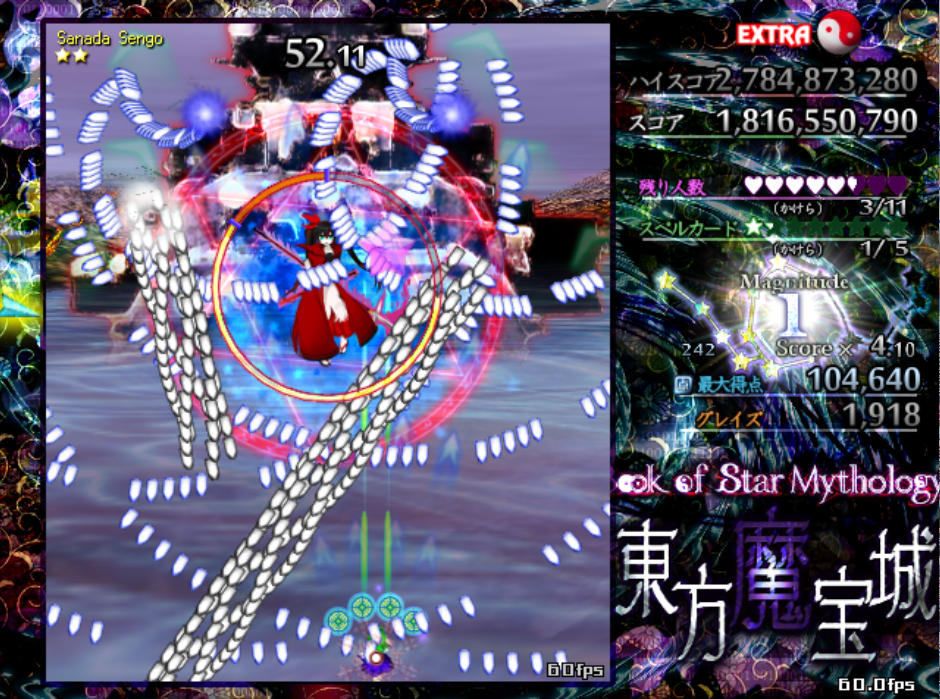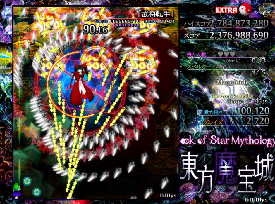 ラストワード宣言前に10の怨霊が弾幕を吐いてきます この段階でボム使用不能&ミスノーカウントです