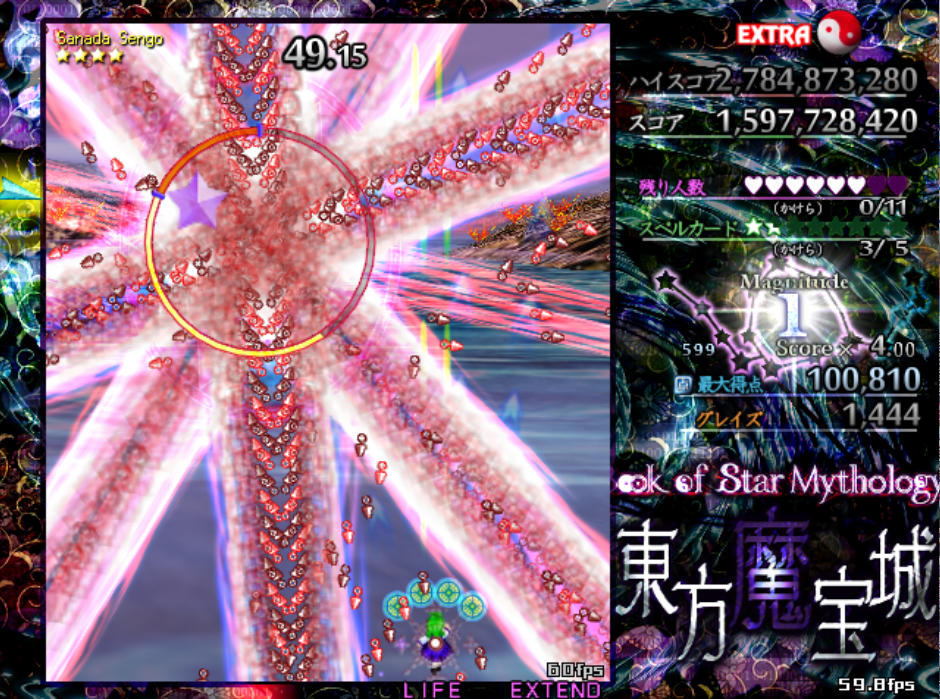 次の段階に移行する際に弾幕はリセットされ、リザルト次第で残機やスペカの欠片を取得可能