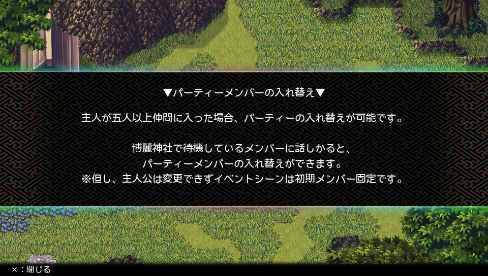 すると博麗神社でパーティメンバーの編成が出来るようになります