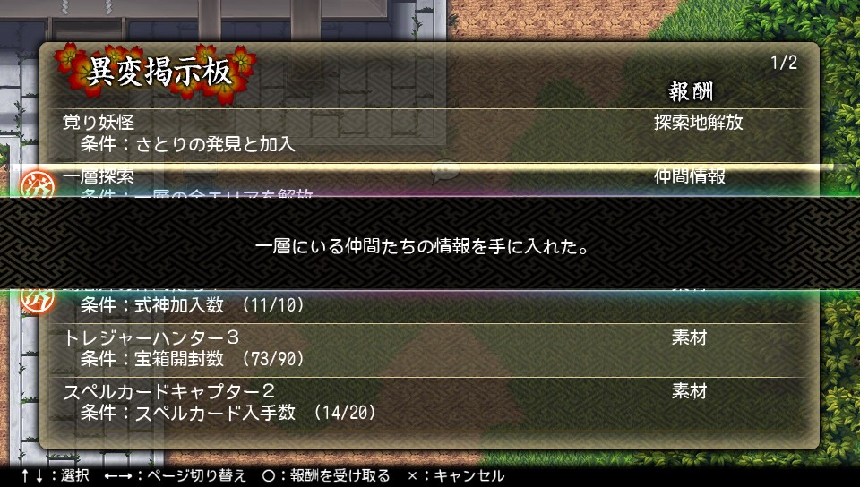 原作だと式神の能力頼りだったため主人ははっきり言って誰でも良かったんですが、今回はダンジョン攻略やボス戦などへの対策を練る際にパーティ編成の楽しみが増えました