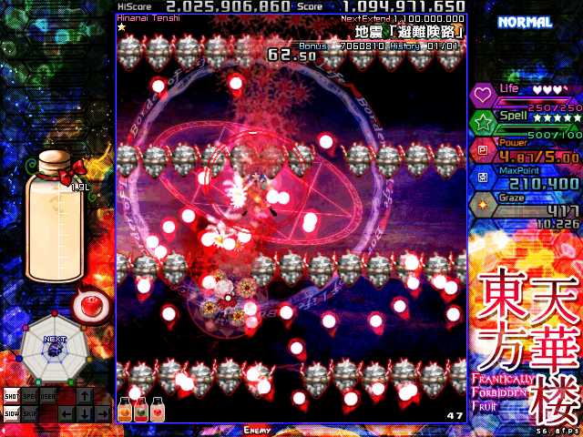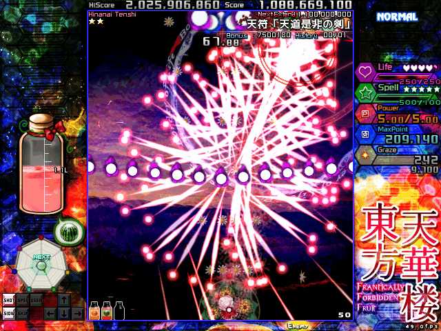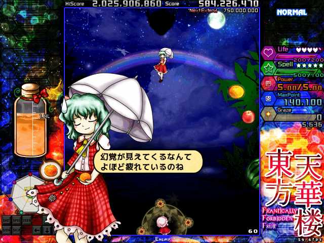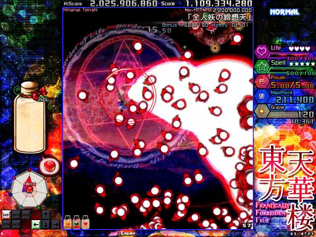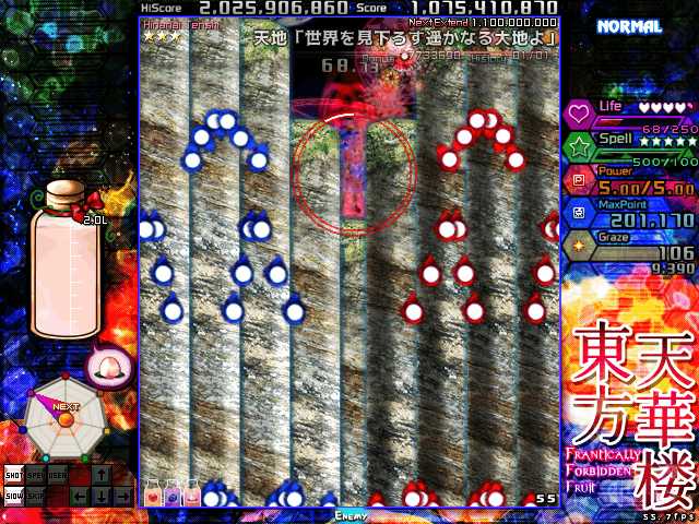 BGMももちろん天子のテーマで、6面ボスには悪いけどこっちが今回のラスボスってくらいにテンションが上がります!