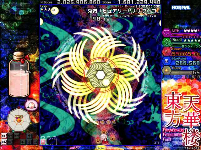 今作で登場する自機は7人で、フルーツの種類も7種、そして鈴瑚は7種のフルーツにちなんだ7枚のスペカを使用してきます