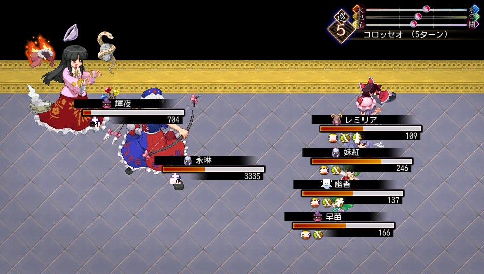 永琳は戦士で物理主体、輝夜は魔法使いで魔法主体なのですが、どちらも属性の弱点はなく、種族の強打を狙うことになります