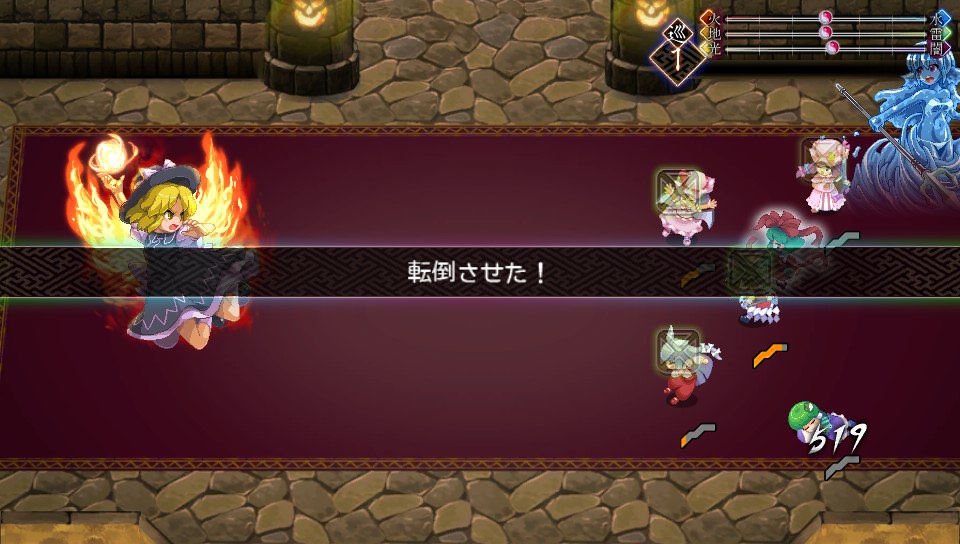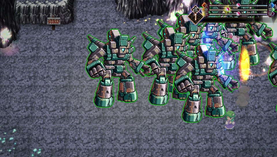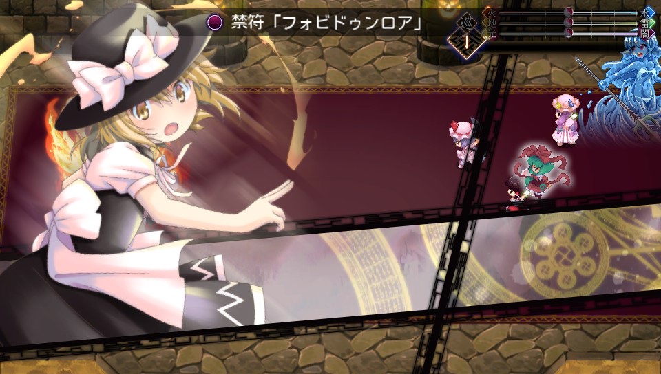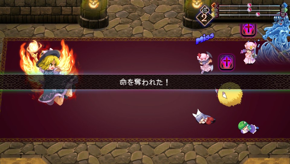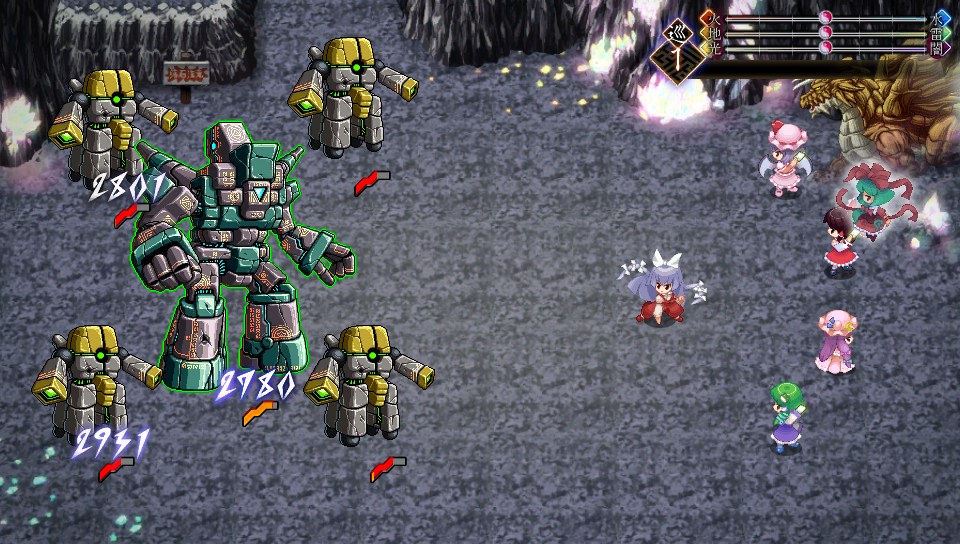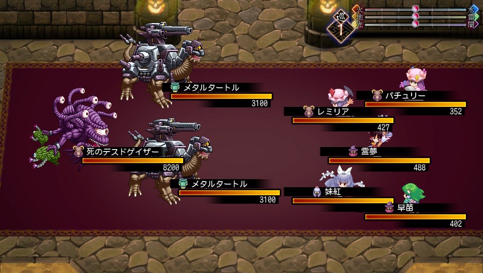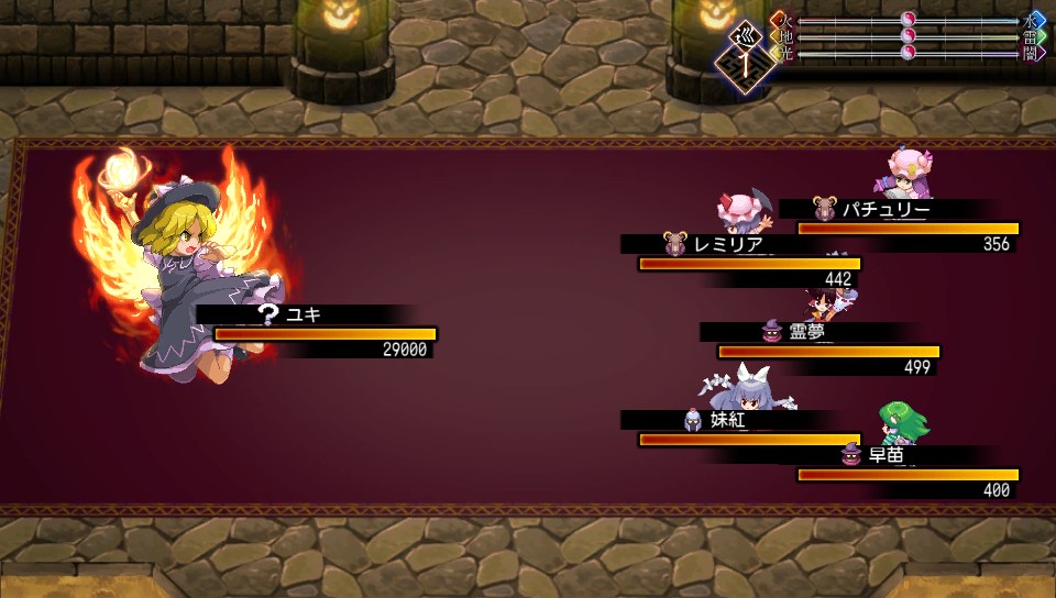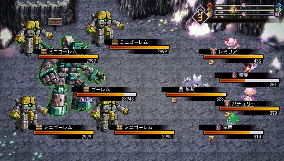 ミニゴーレムのHPは2999で、地属性が弱点なので魔攻上昇をかけたパチュリーのスペルカードなら一撃で片づけられます