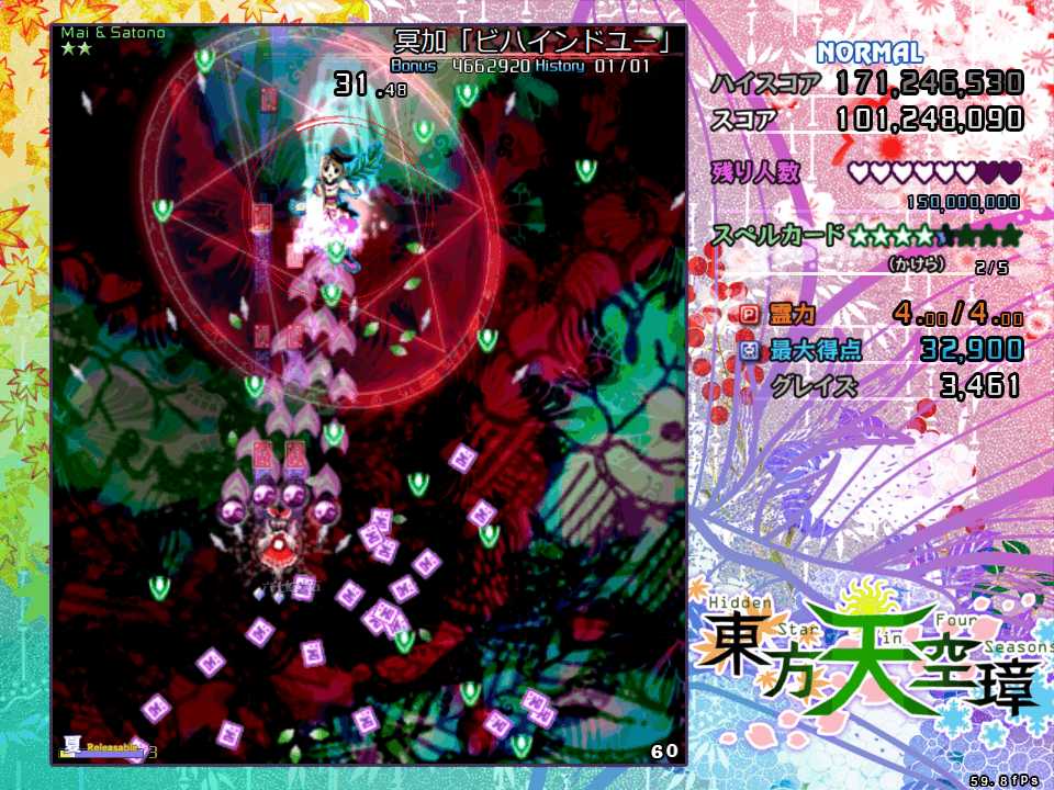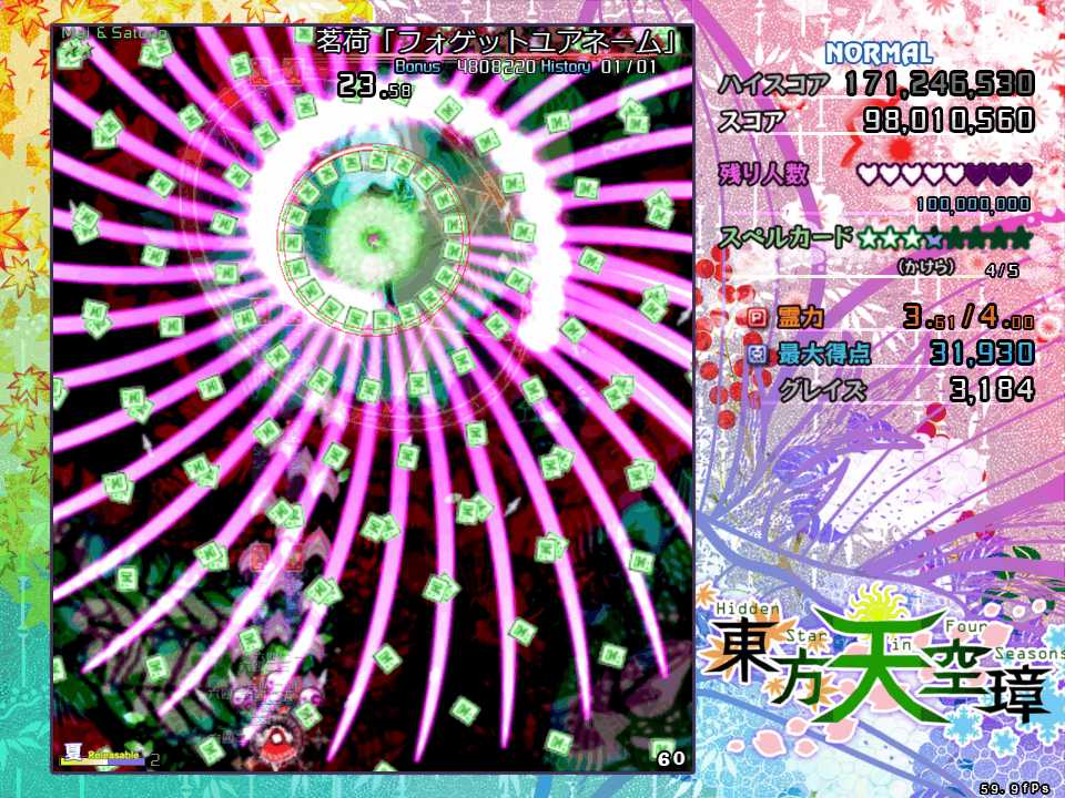 ほんとに、こんなに難しいスペルカードをよく4つも作ったもんですw