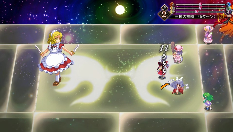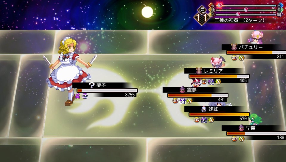 発動前に必ず予備動作があるのが救いなので、力溜めをしてきたら勇儀やゼラチナスマターのベネブランス・ウォールで全員をかばい、椛のフィジカル・ディフェンスで物理ダメージをカットしましょう