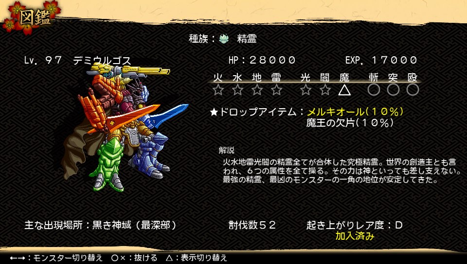 ただ、仲間になる式神でドラゴンとヤークトリッターだけは弱点が存在せず、倒すには専用の対策が必要なのでまだ攻略できてません