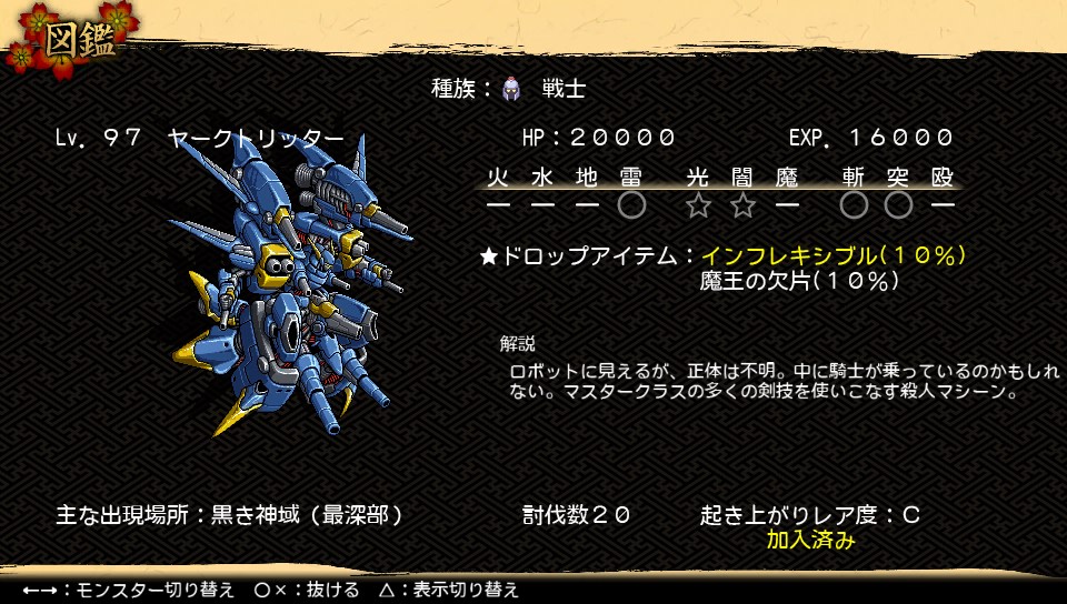 経験値は6万とゆっくり系では最高ですが、HPが20もあるので物理で殴り倒すのは非現実的です