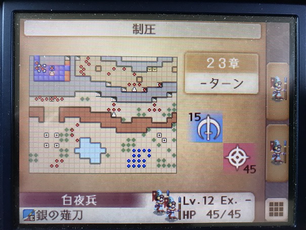 24章はマップが広いので配置されている敵を順番におびき出して撃破すればいいかと思い、23章に比べれば簡単だろうと楽観視してたんですが、考えが甘すぎましたorz