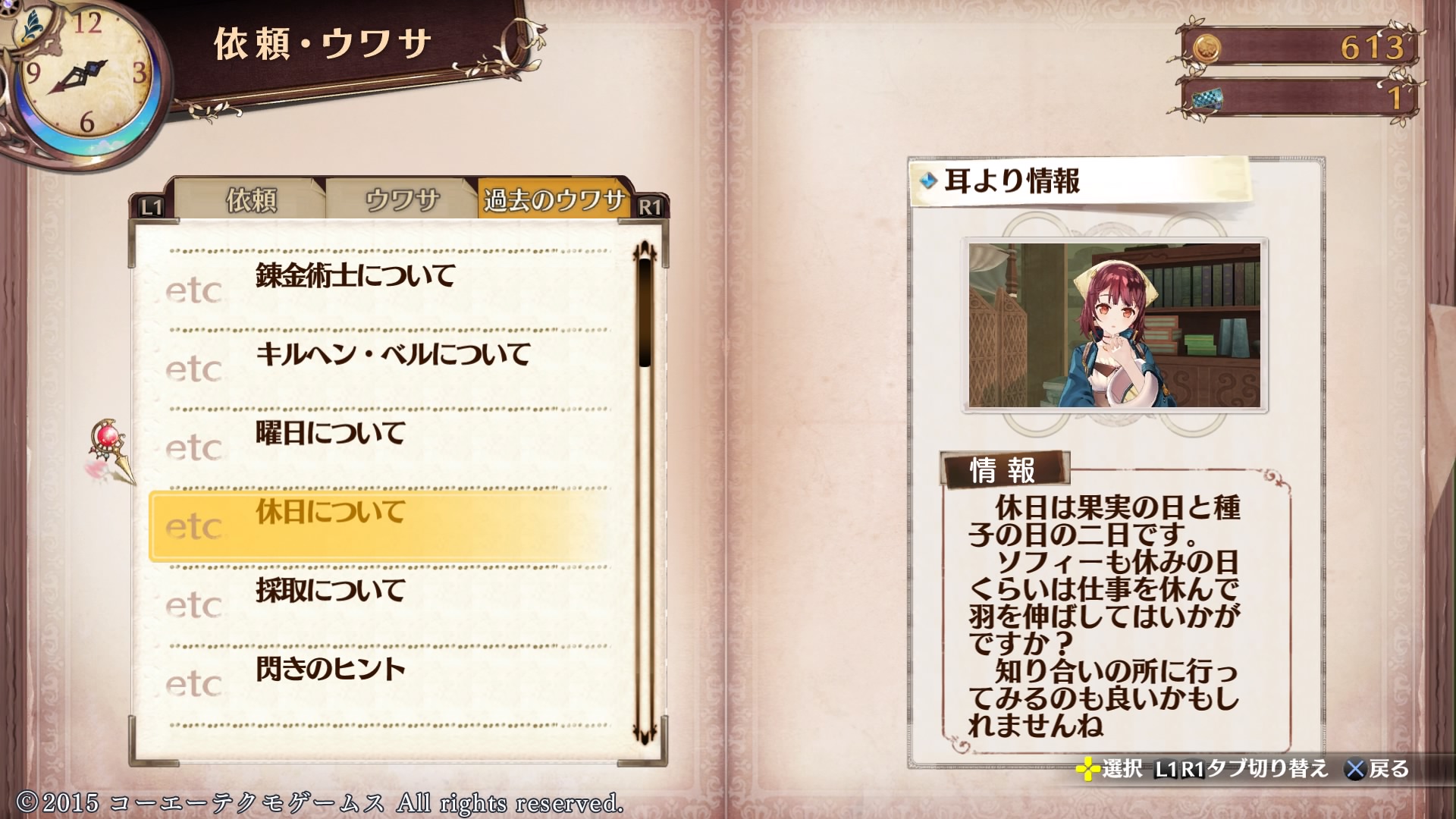 あと、探索から帰ったときに消耗したHPを回復するのにもベッドで休むのが有効だったんですが、ソフィーでは町に戻ると自動的に全回復してしまいます