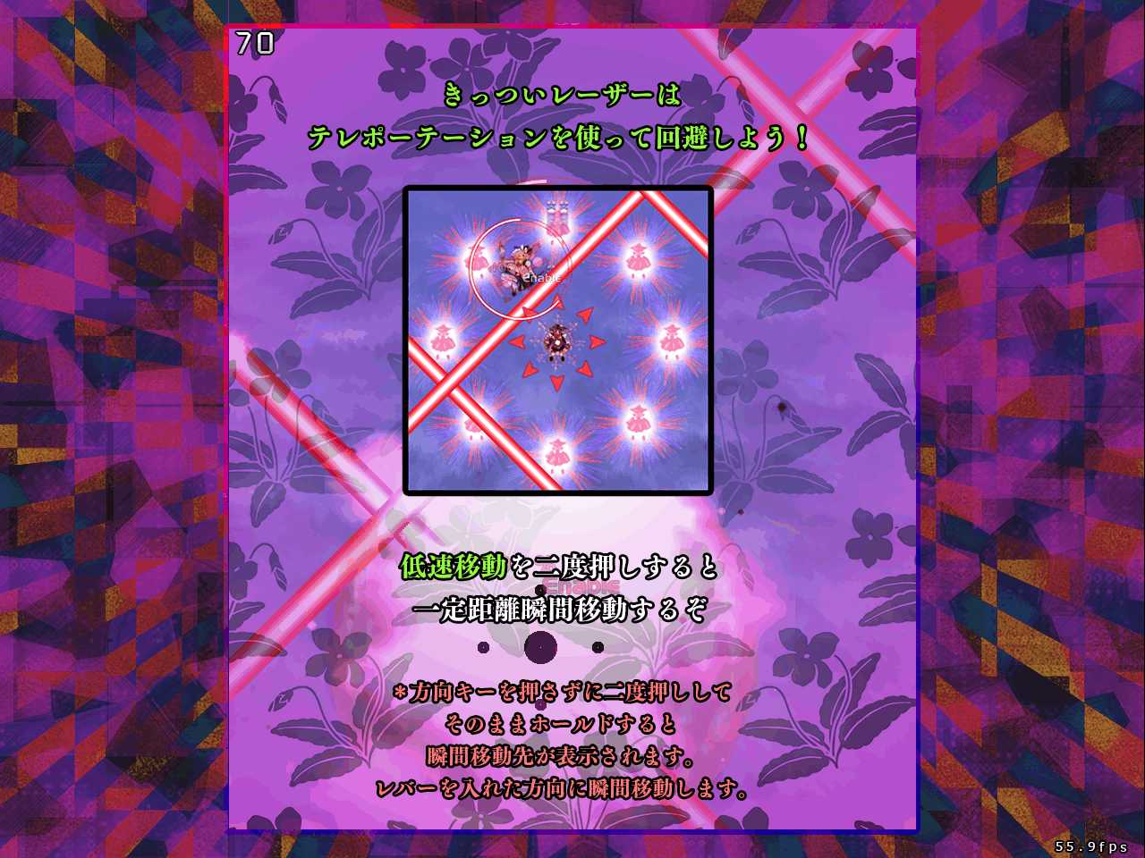 LV2で習得するテレポーテーションは地霊殿の紫のような画面端を移動するものかと思いきや、8方向から入力した方向に一定距離を瞬間移動するという他作品では類を見ない能力