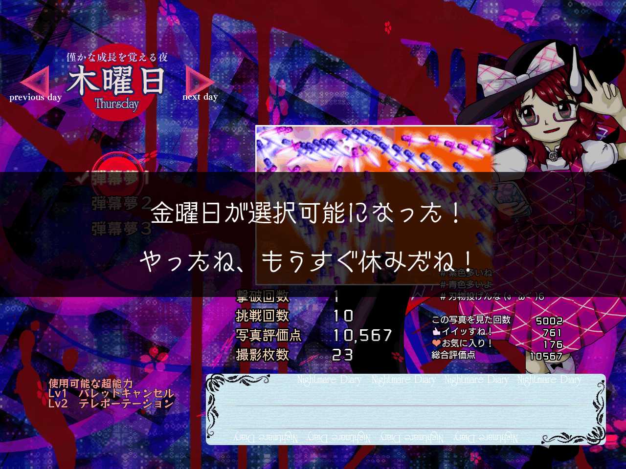 今作はタイトルの悪夢の日記という通り、思った以上に暗いシナリオでした